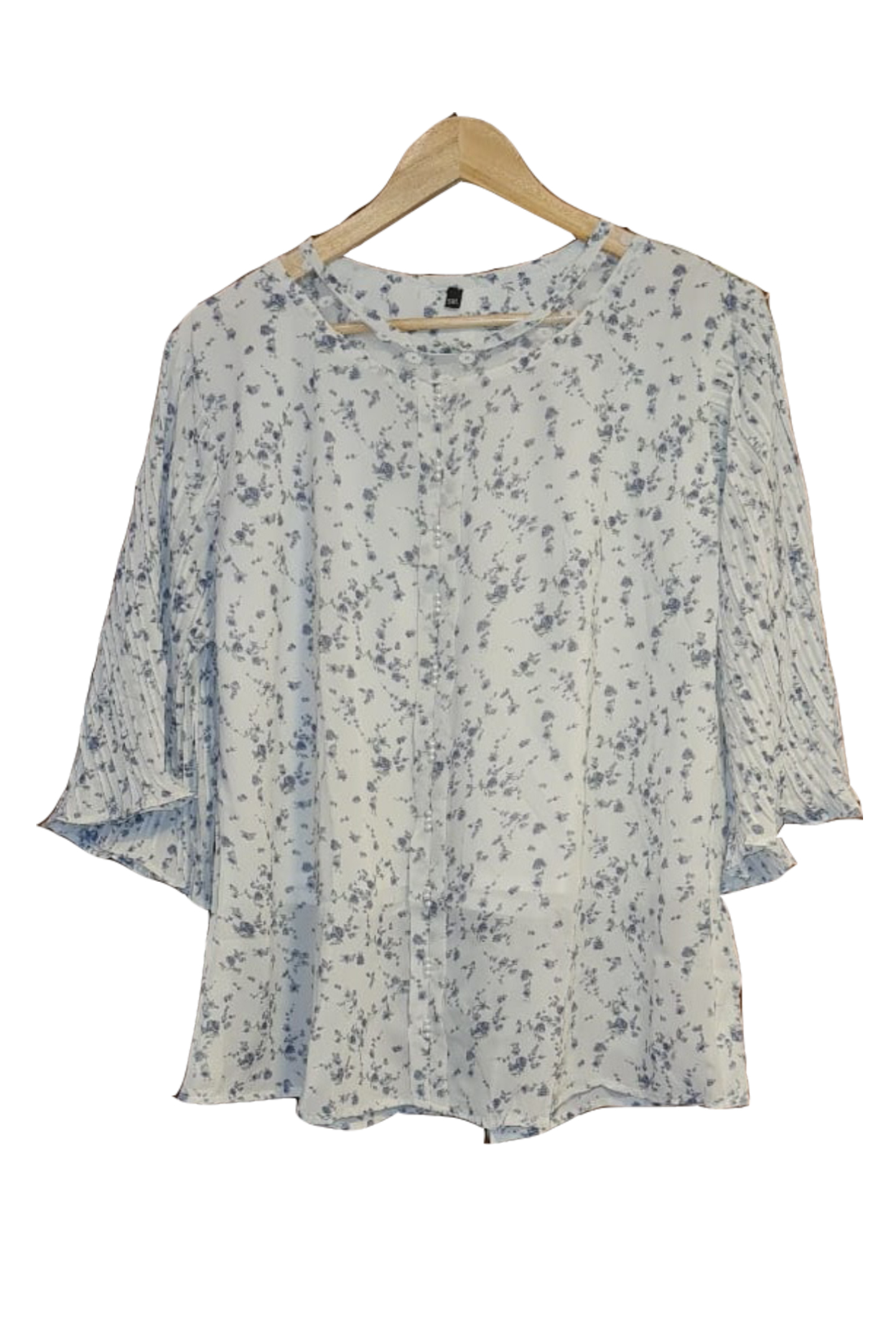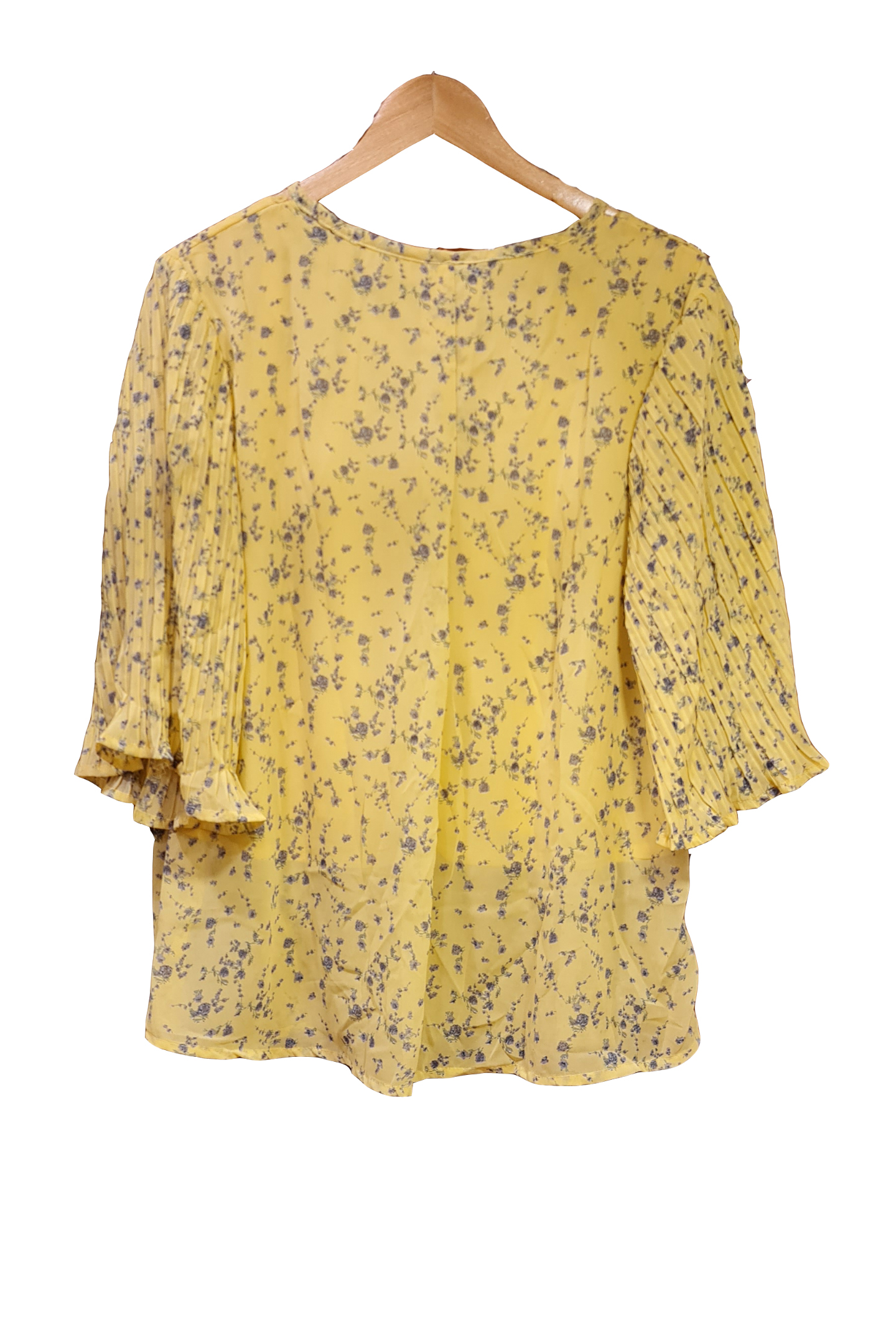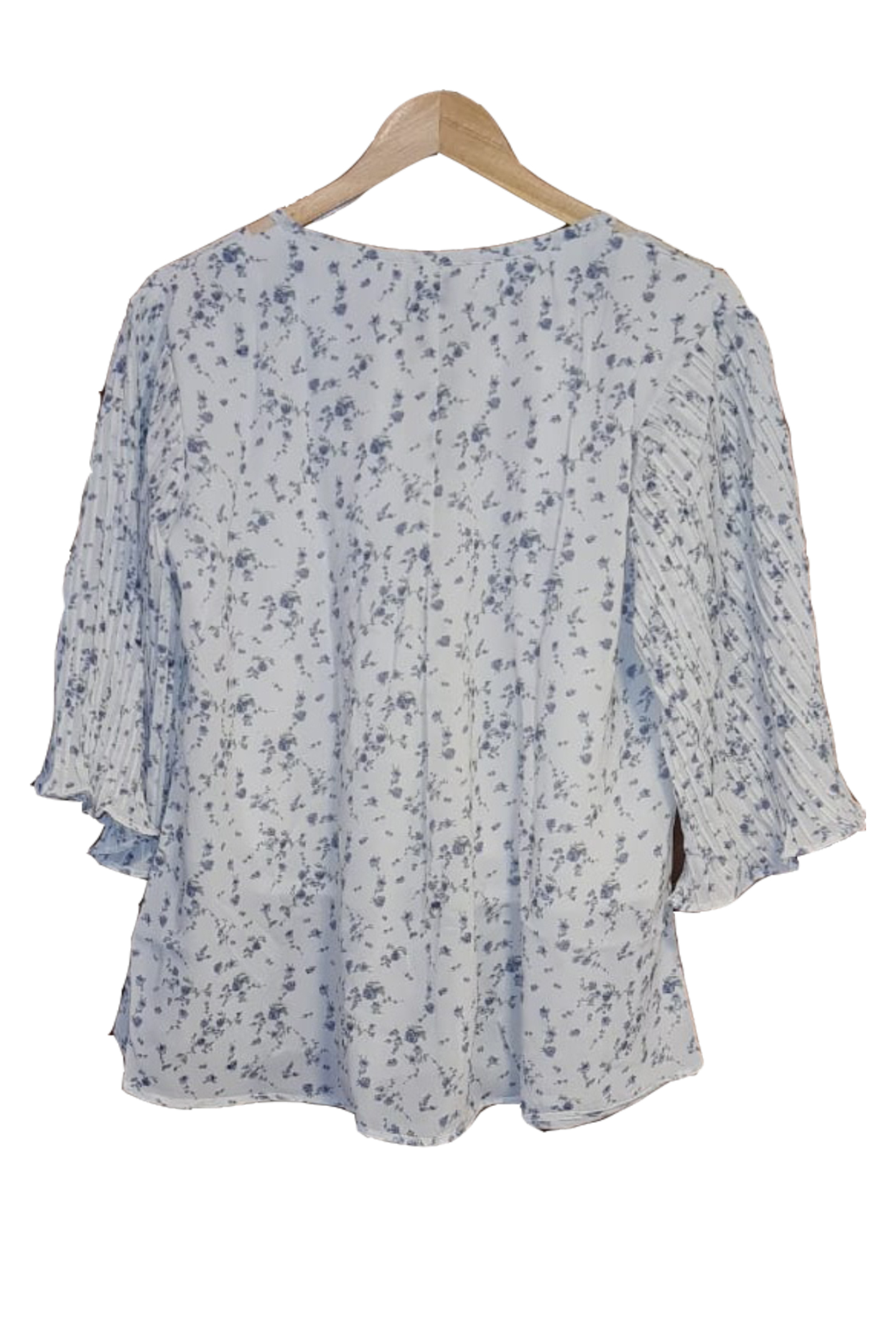 Printed top with pleated sleeves